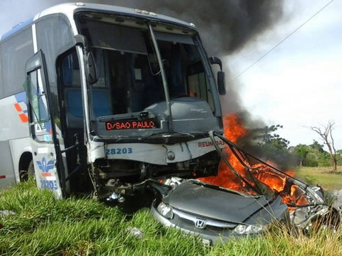 Carro explodiu após batida em ônibus de turismo (Foto: Oeste Capital FM/Divulgação)