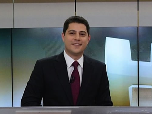 jornalista Evaristo Costa no cenário do Jornal Hoje, que ele apresenta
