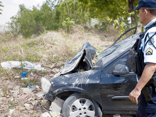 terreno baldio. O corpo da vítima ficou preso na frente do automóvel.