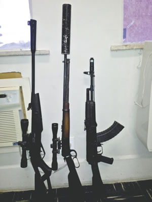 silenciador e uma espingarda de pressão, também com luneta, foram