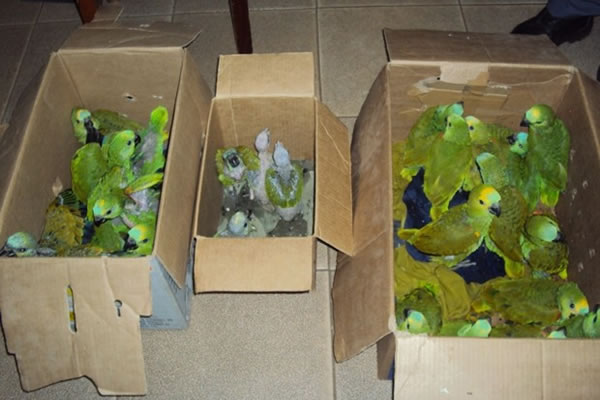 As aves foram encontradas em caixas de papelão no porta-malas do carro do suspeito, que estava indo para Mato Grosso. No carro estavam três pessoas e uma delas confessou que era dono dos animais.