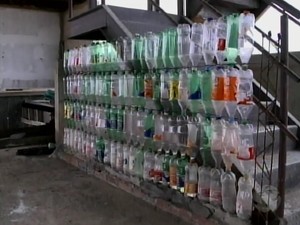 Um prédio está sendo construído com garrafas PET no lugar dos tijolos e