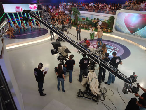 Funcionários da Record preparam gravação de programa apresentado por Rodrigo Faro, em 2012 (Foto: Divulgação/Record)