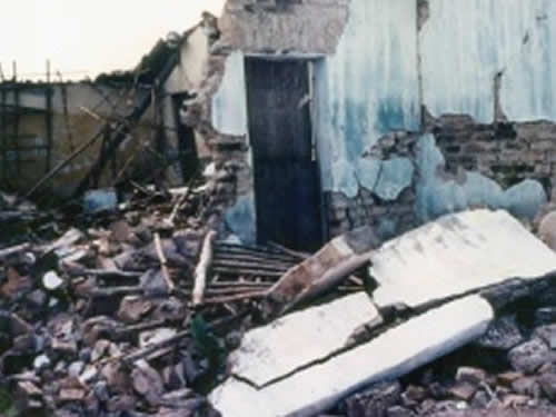 | Casa destruída durante tremor de terra na mesma cidade, em 1986. (Foto: divulgação) |