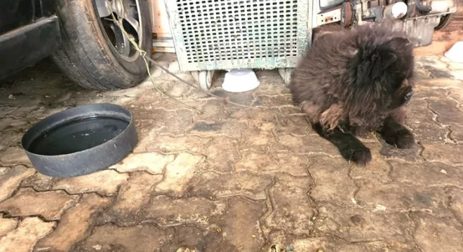 Além disso, manteve contatos com a representante de uma ONG protetora de animais e uma veterinária para irem ao local o que foi feito. Eles se depararam com um cão da raça chow-chow cego, em meio a fezes e ferro velho abandonado e amarrado a partir de um cabo de energia elétrica de apenas um metro que não lhe dava espaços para circulação. Trata-se de um cão bastante dócil que respondia a todos com atenção e carinho.