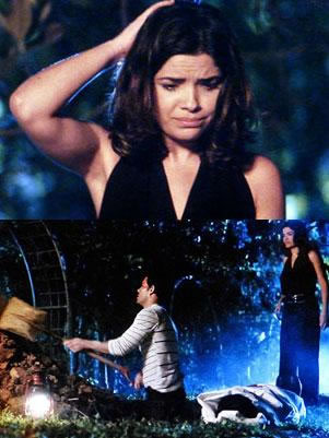 (Vanessa Giácomo) enterrará o corpo de Mariah (Lúcia Veríssimo) no
