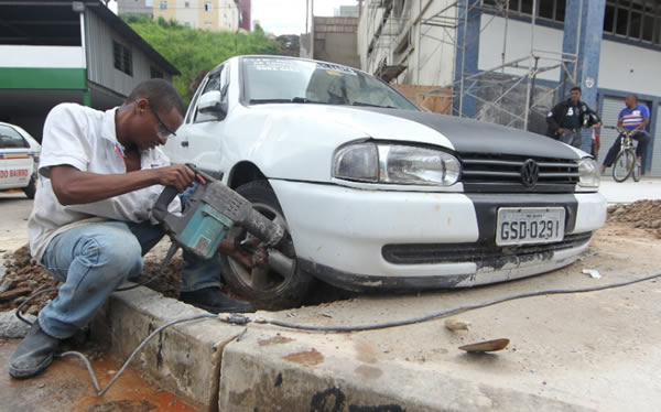 Dono de prédio quebra concreto de carro fixado na calçada em BH