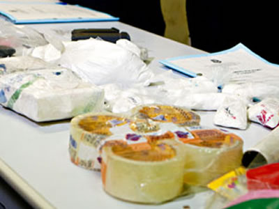 Drogas como crack e produtos químicos que seriam misturados à cocaína