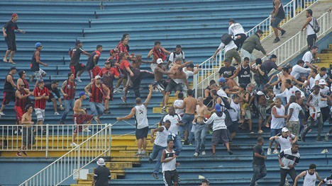 Briga entre torcedores do Atlético-PR e Vasco, em Joinville (Foto: Heuler Andrey/ Agif/Gazeta Press)