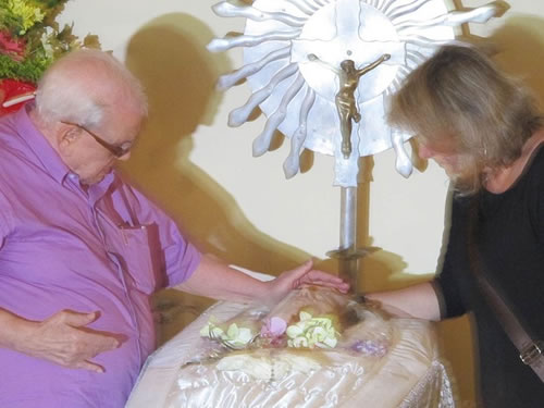 Comediante Ary Toledo se despede da mulher, Marly Marley, no velório dela em SP. (Foto: Fábio Tito/G1)