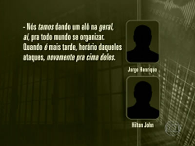 Nas escutas gravadas com autorização judicial e exibidas no Fantástico deste domingo (5), Araújo conversa com um dos presos, identificado pela polícia como Jorge Henrique, que reclama da ocupação do presídio por parte da polícia e da Força Nacional de Segurança. Ele, então, ordena os ataques. "Nós tamos dando um alô geral aí pra todo mundo se organizar. Quando é mais tarde, horário daqueles ataques, novamente pra cima deles. É ônibus, é polícia, é bombeiro, é tudinho, tá ligado (sic)?".