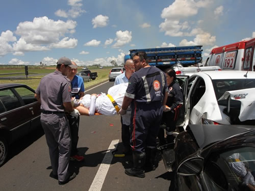 A colisão envolvendo quatro carros e dois caminhões deixou três feridos no km 238, do sentido interior da Rodovia Washington Luís. O acidente aconteceu por volta de 12h45 e foi causado pela fumaça de um incêndio em um matagal às margens da pista, segundo a Polícia Rodoviária. O acidente causou lentidão de pelo menos 3 quilômetros.