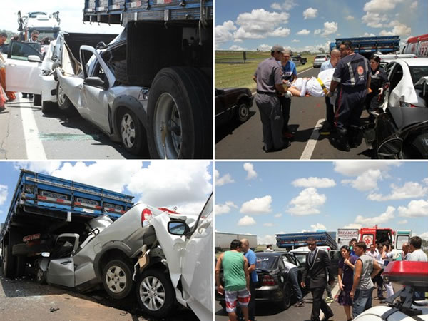 De acordo com testemunhas, o motorista de um caminhão-baú reduziu a velocidade ao entrar na fumaça. Um outro caminhão que vinha atrás não conseguiu frear e bateu na traseira. Uma picape que vinha em seguida entrou embaixo do caminhão, provocando um engavetamento com outros três carros, entre eles um que levava uma noiva recém-casada para a festa.