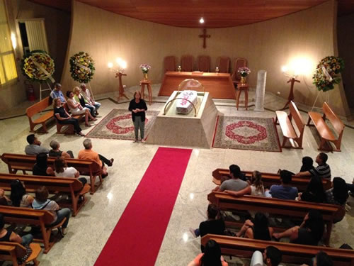 cerimônia de cremação na noite deste domingo (5), no cemitério Horto da