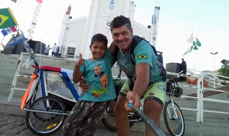 Lobo quer ensinar ao filho, o pequeno Nicolas, a devoção que aprendeu com os pais. Por isso, decidiu levar o menino a Juazeiro do Norte. "Isso vem desde que eu era pequeno, que eu vinha com minha avó, com minha mãe, e daí, depois, o trabalho, as coisas atrapalham um pouco, mas desde 2009 que venho sem parar, de bicicleta, a pé", disse o alagoano.