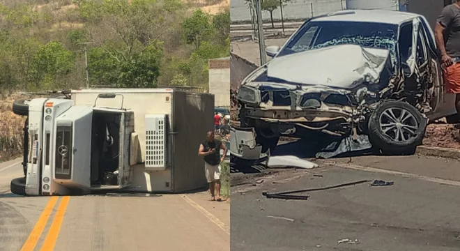 Grave acidente em Farias Brito entre caminhão e picape e, no Juazeiro, GPTran prende condutor de moto embriagado